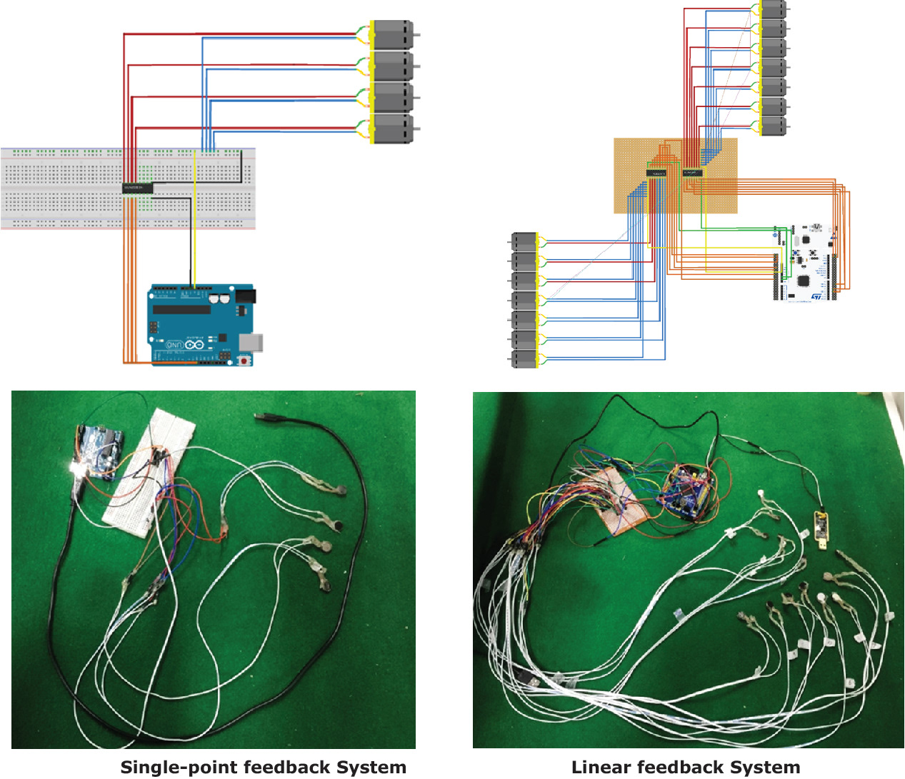 Single-point feedback system consists of 4 vibration motors, 1 driver chip(ULN2003A) and 1 micro-controller(Arduino UNO) ;